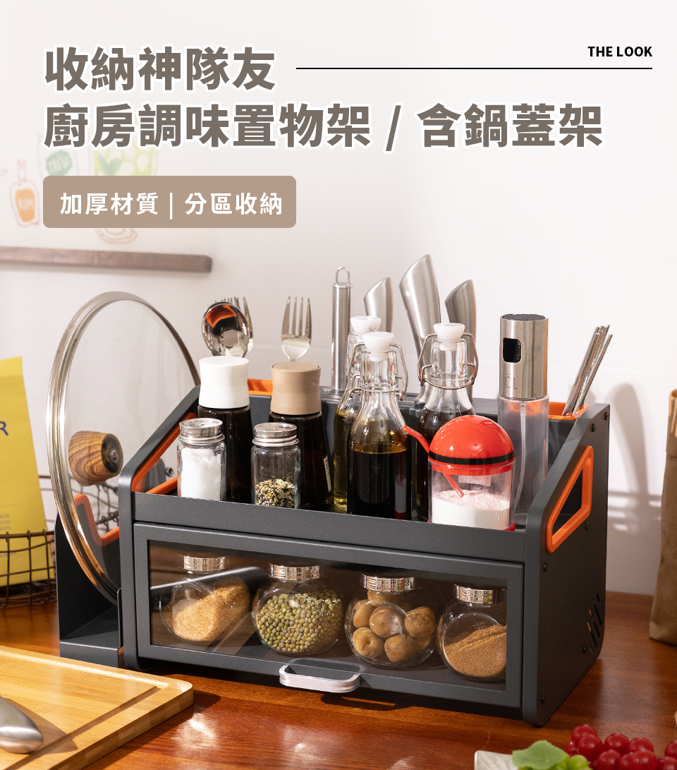 首頁>THELOOK 單層多功能廚房置物架/含鍋蓋架 / I1053