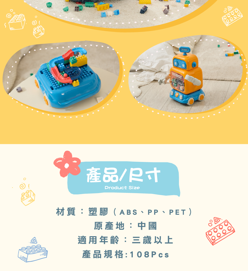 多功能益智積木車 108pcs 機器人 / H1234-R