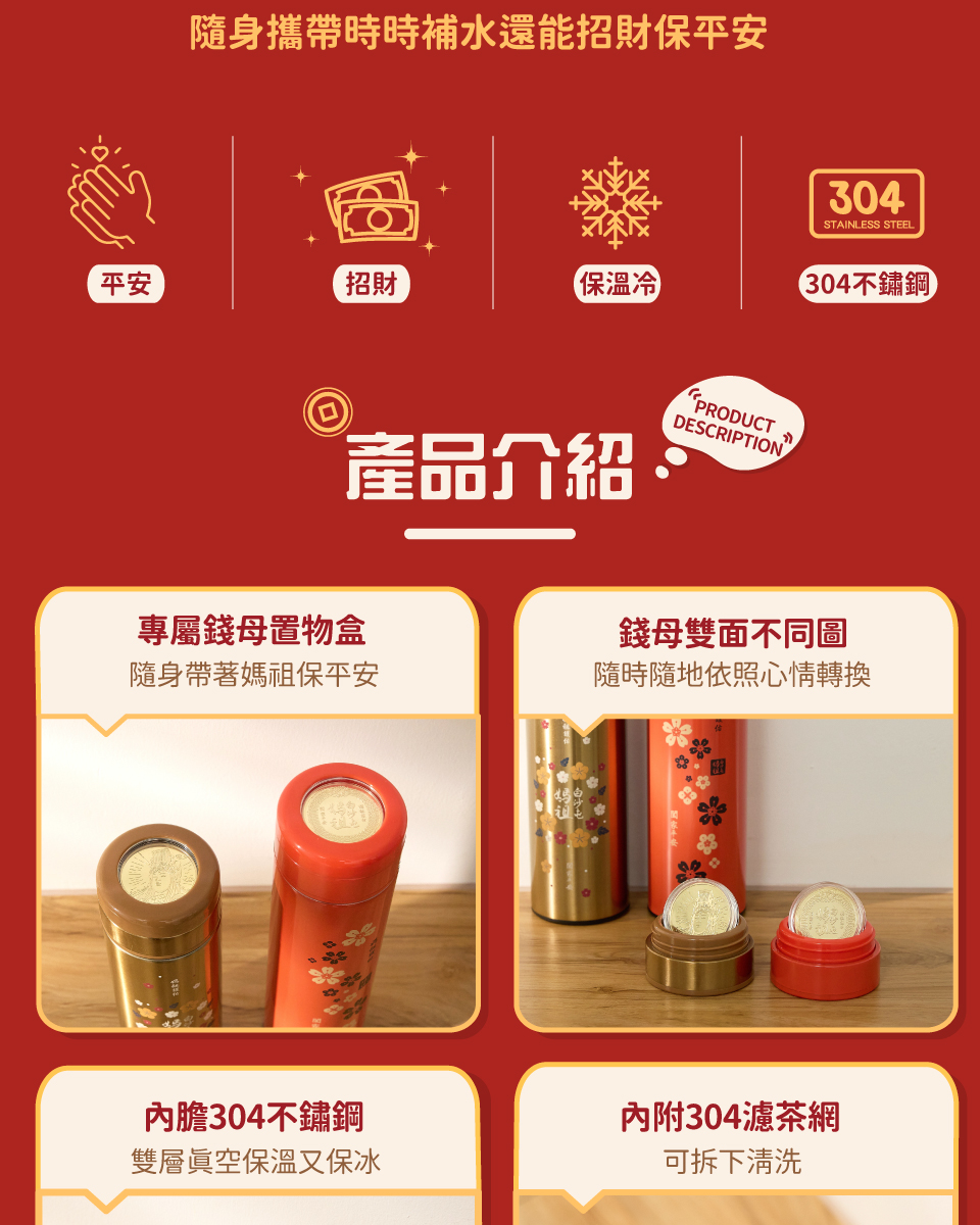 材質:瓶身/內膽304不鋼;瓶蓋/PP;錢母/合金