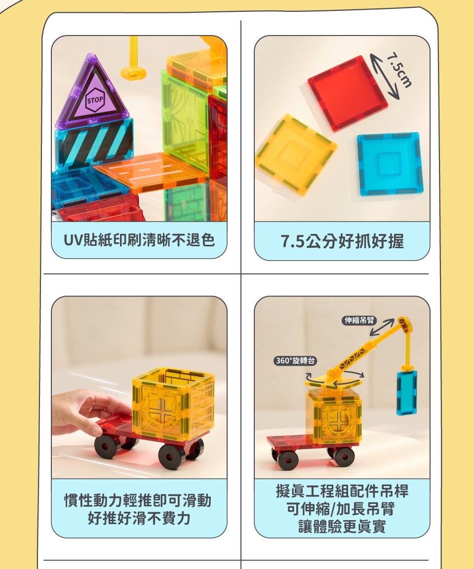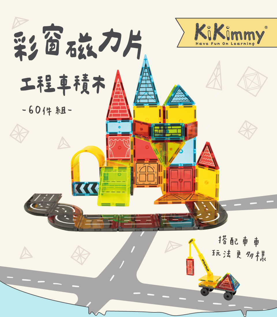 首頁>Kikimmy>塑膠玩具彩窗磁力片工程車積木玩具組-60pcs / H1192