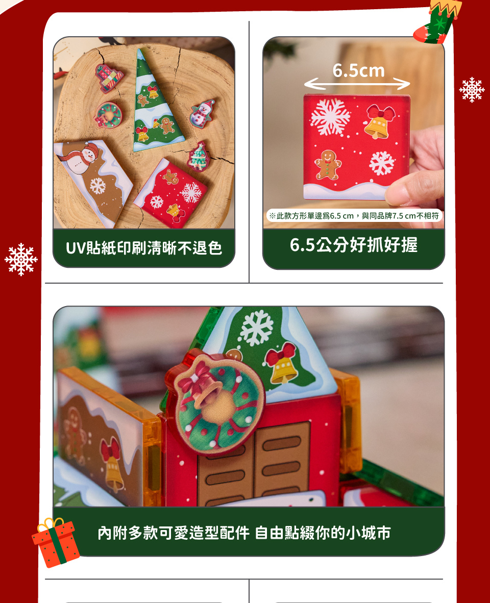 **本款方形磁力片尺寸為6.5公分, 與同品牌7.5公分方形磁力片不相容**