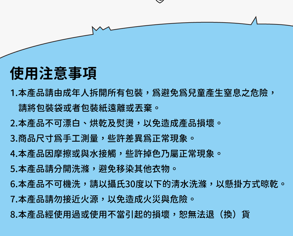 不可熨燙及燙壓。