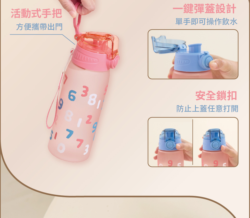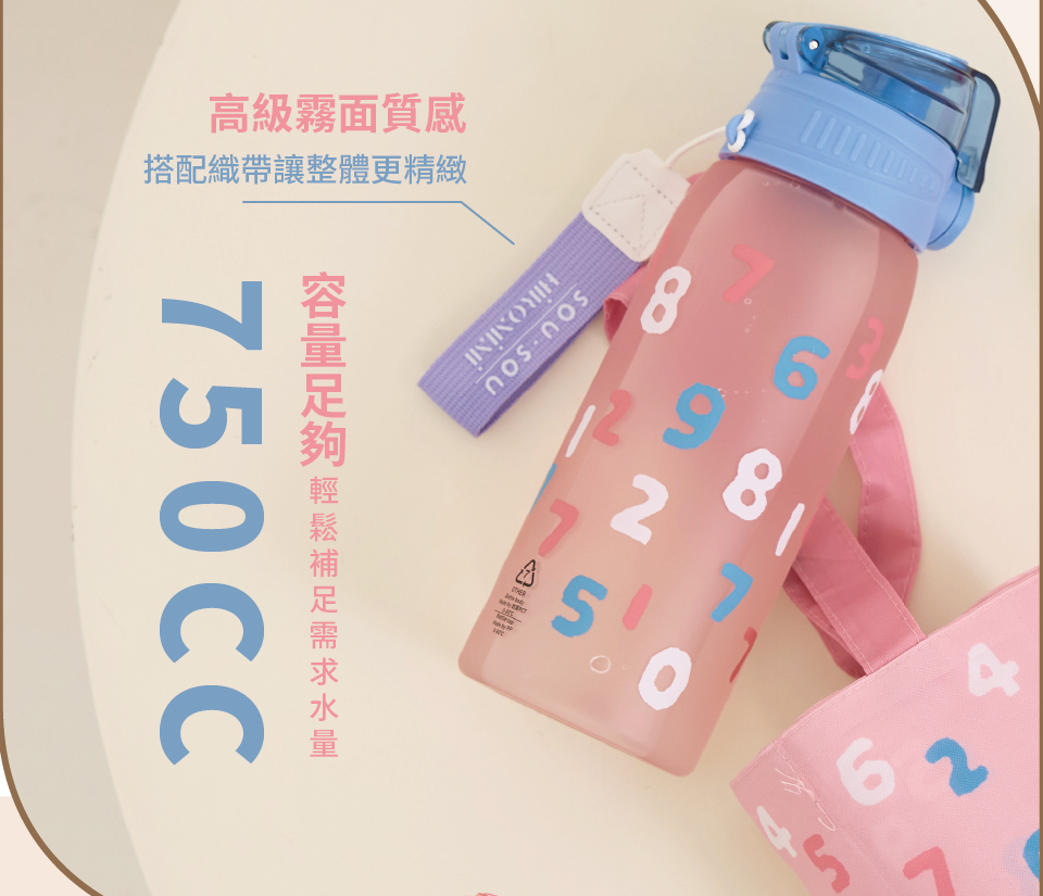 成分: 瓶蓋/塑膠PP(聚丙烯)、PC;墊圈/矽膠;瓶身/TRITAN(改質PCT);杯袋/聚酯纖維