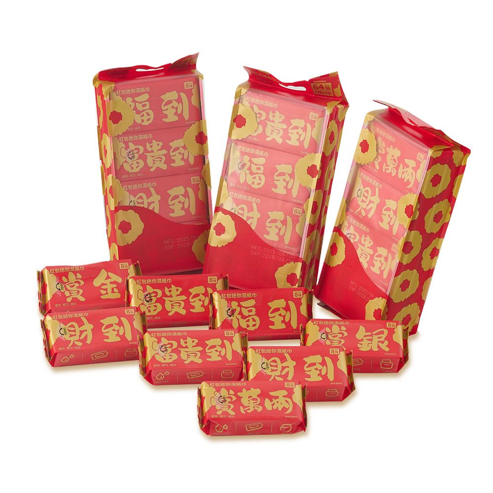 【10入組】紅包迷你濕紙巾8抽x8包(入) / W0013